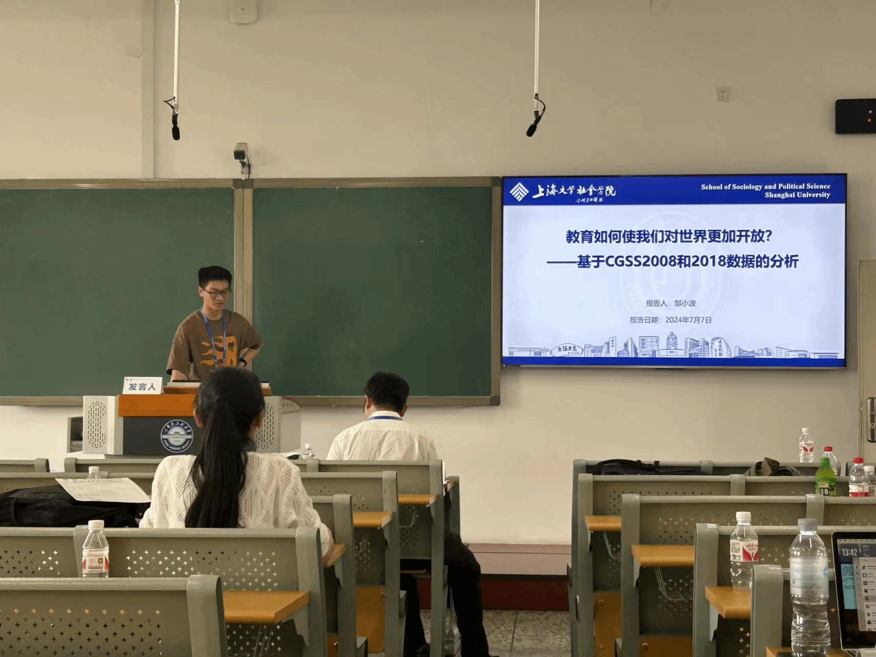 202477日,2023级社会学硕士研究生邹小波参加中国社会学会2024年学术年会,在“政治社会学”论坛作题为《教育如何使我们对世界更加开放?——基于CGSS20082018数据的分析》的论文汇报。