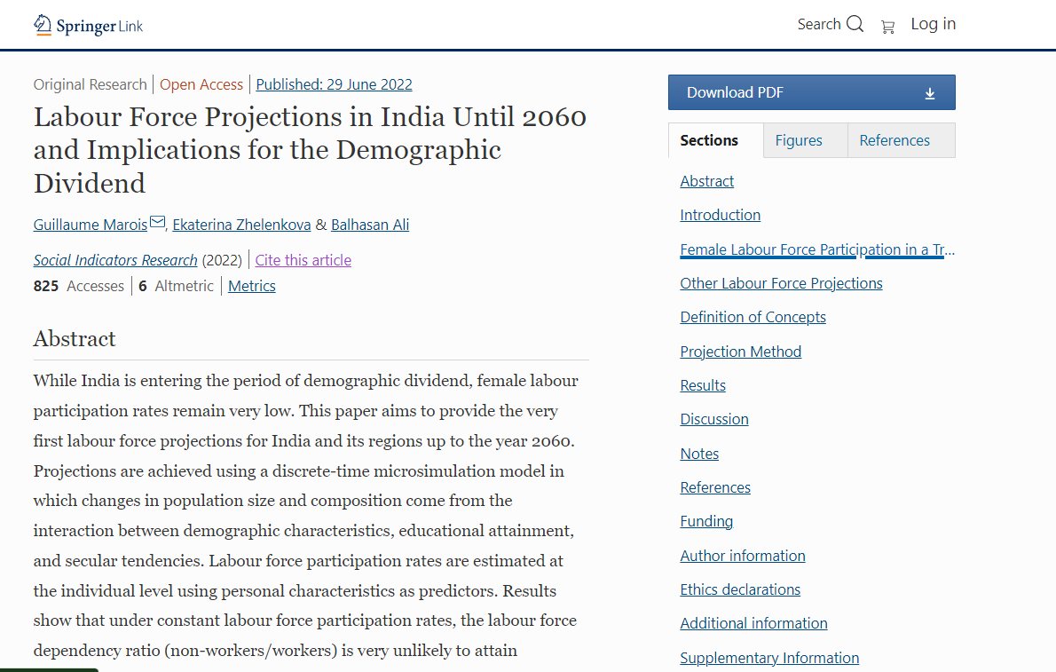 近日,365英国上市集团亚洲人口研究中心暨人口学研究所Guillaume Marois副教授在SSCI期刊Social Indicators Research发表最新文章“Labour Force Projections in India Until 2060 and Implications for the Demographic Dividend(2060年印度劳动力预测及其对人口红利的意义)”。Guillaume Marois副教授为本文第一和通讯作者,英国365公司为第一单位。