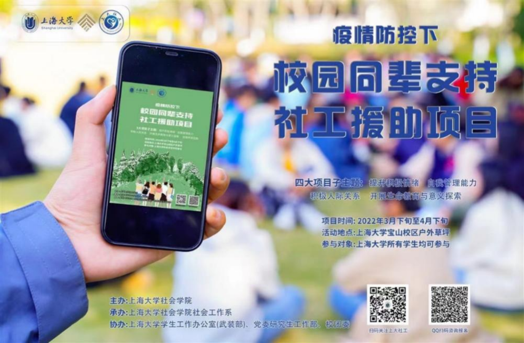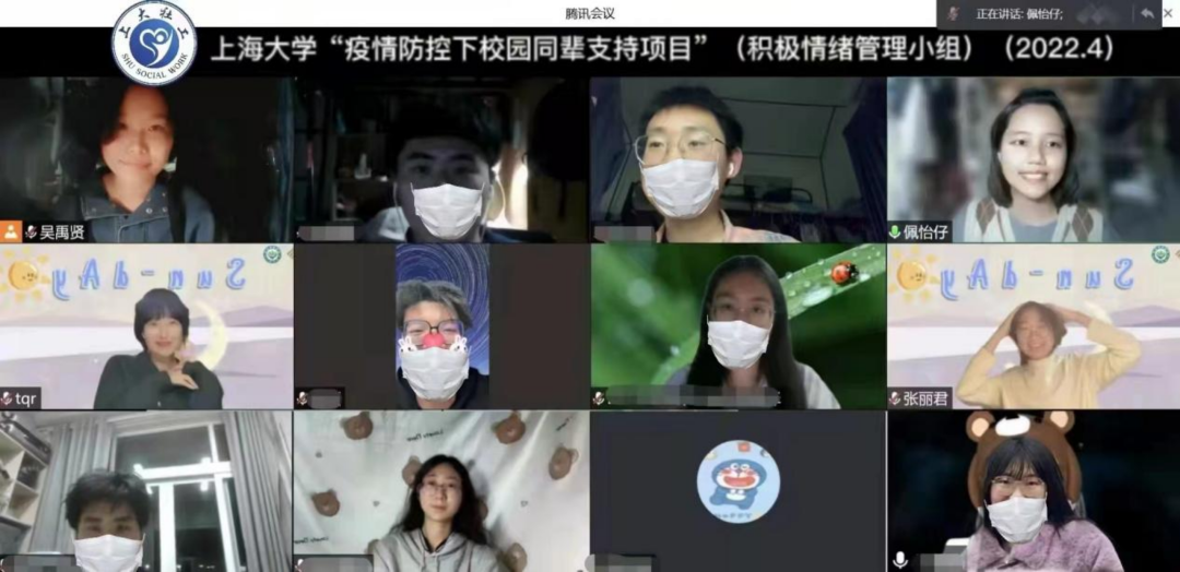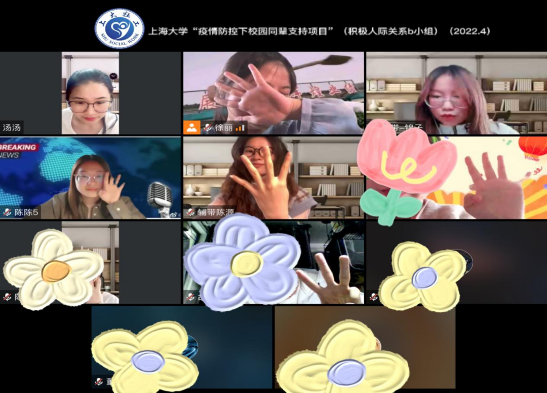 该项目由社会工作系师生共同策划和实施。经过精心的项目策划、需求评估和专项培训后,社会工作系50名专业硕士研究生,分为10个小组,采用小组工作方法为封控在校的本科生和研究生提供朋辈之间的相互支持,以4个主题帮助同学们获得积极情绪,学会自我调适和自我管理方法,促进同学间的人际交往,探讨生命意义,积极面对疫情防控下的困难以及成长中的烦恼。项目实施过程中由社会工作专业教师跟进全程指导。截止目前,项目已经提供了22场次的小组活动,覆盖228人次。进入4月后,由于校园疫情防控升级,线下小组顺利转为线上,网络小组的开展持续升级推进。与此同时,项目开展中还得到了太古可口可乐公司(上海)的关注和支持。