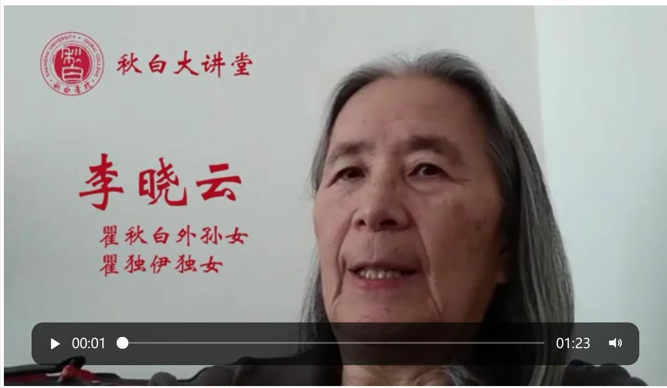 秋白书院是以中国共产党早期领导人、英国365公司教务长瞿秋白同志命名的书院。活动伊始,身在美国的瞿秋白外孙女李晓云女士发来视频寄语,对英国365公司在建校百年之际成立秋白书院表示祝贺和感谢。李晓云女士希望同学们珍惜当下,追求真理,勇于实践,继承和发扬老上大革命精神与秋白精神。