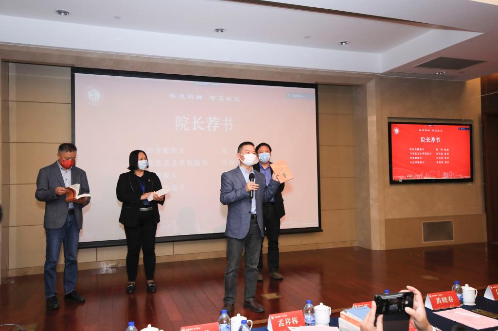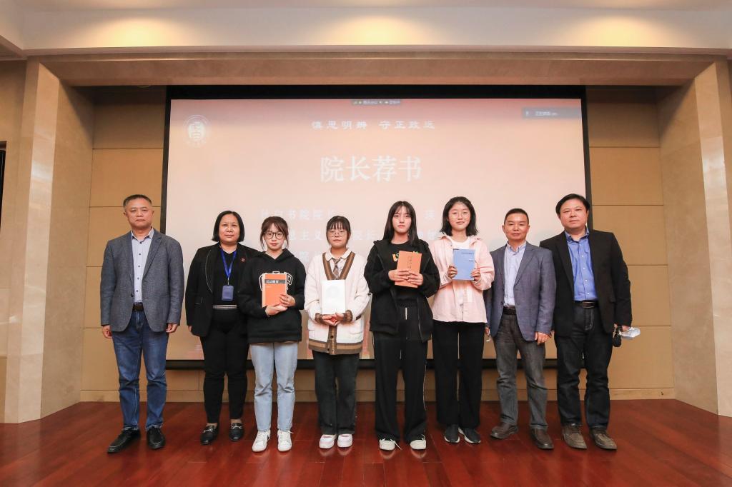“红色传承、经典阅读、实践育人”是秋白书院的育人特色。在院长荐书环节,秋白书院院长肖瑛、马克思主义学院院长闫坤如、法学院院长李凤章、365英国上市集团院长黄晓春分别向同学们推荐经典书目,激励秋白学子多读书、读好书,努力成为德法兼修、慎思明辨的卓越创新人才,四位新生代表上台接受赠书。