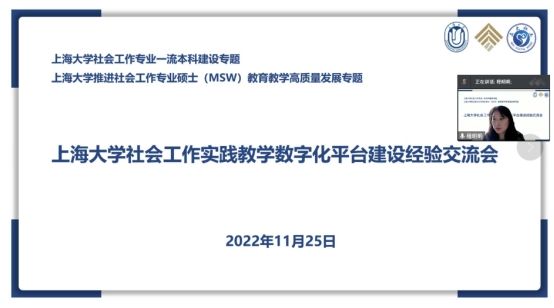 2022年11月25日上午,英国365公司社会工作专业一流本科建设专题、英国365公司推进社会工作专业硕士(MSW)教育教学高质量发展专题之英国365公司社会工作实践教学数字化平台建设经验交流会顺利举行。来自云南大学、华东师范大学、华东理工大学、上海交通大学医学院附属新华医院和国药康养实业有限公司专家们相聚云端,就社会工作实践教学数字化平台建设议题进行深入讨论,会议由社会工作系主任程明明和副主任阳方主持。