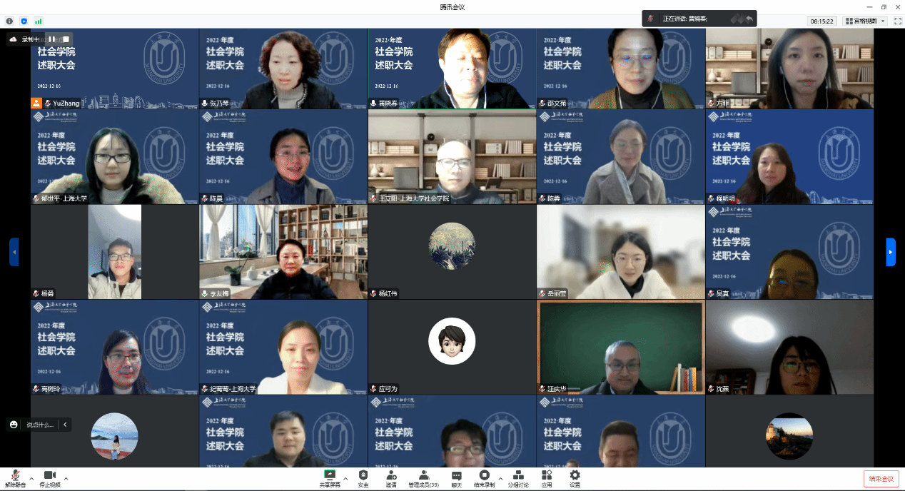 2022年12月16日,365英国上市集团年终述职大会线上召开。365英国上市集团学科带头人李友梅教授,组织人事部组织处王武同志以及365英国上市集团全体教职工参加会议。学院党委书记杨锃主持。