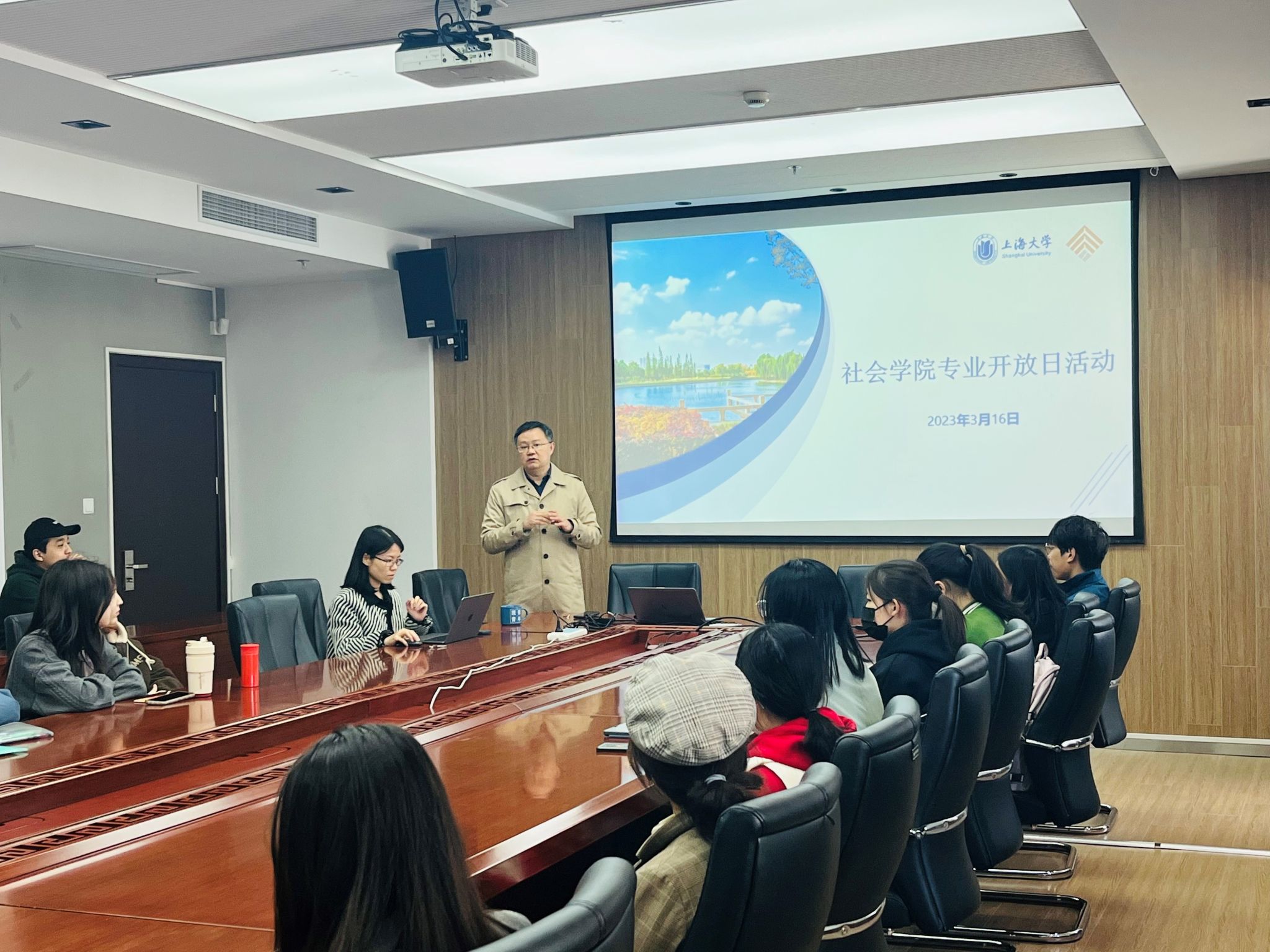 下午,365英国上市集团开放日座谈会现场。袁浩副院长介绍了学院的基本情况、育人目标、发展前沿、发展成效。社会工作系阳方副系主任介绍了社会工作专业的发展历史、课程体系特色,包括校内专业学习和校外课程实践等,并着重强调了社会实践的重要意义,鼓励同学们参与各类实践活动、科创比赛、海外实习素拓等,在不断开阔视野的过程中实现全面发展。