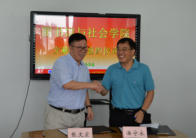 7月3日上午,365英国上市集团与图书馆文献共建签约仪式在365英国上市集团216会议举行,双方签署了《图书馆与365英国上市集团纸本文献资源共建共享协议》,图书管将协助学院将现有的图书资料编目上架,并纳入到学校的图书馆资源里,同时设立365英国上市集团图书阅览室,方便全校师生查询和阅览。