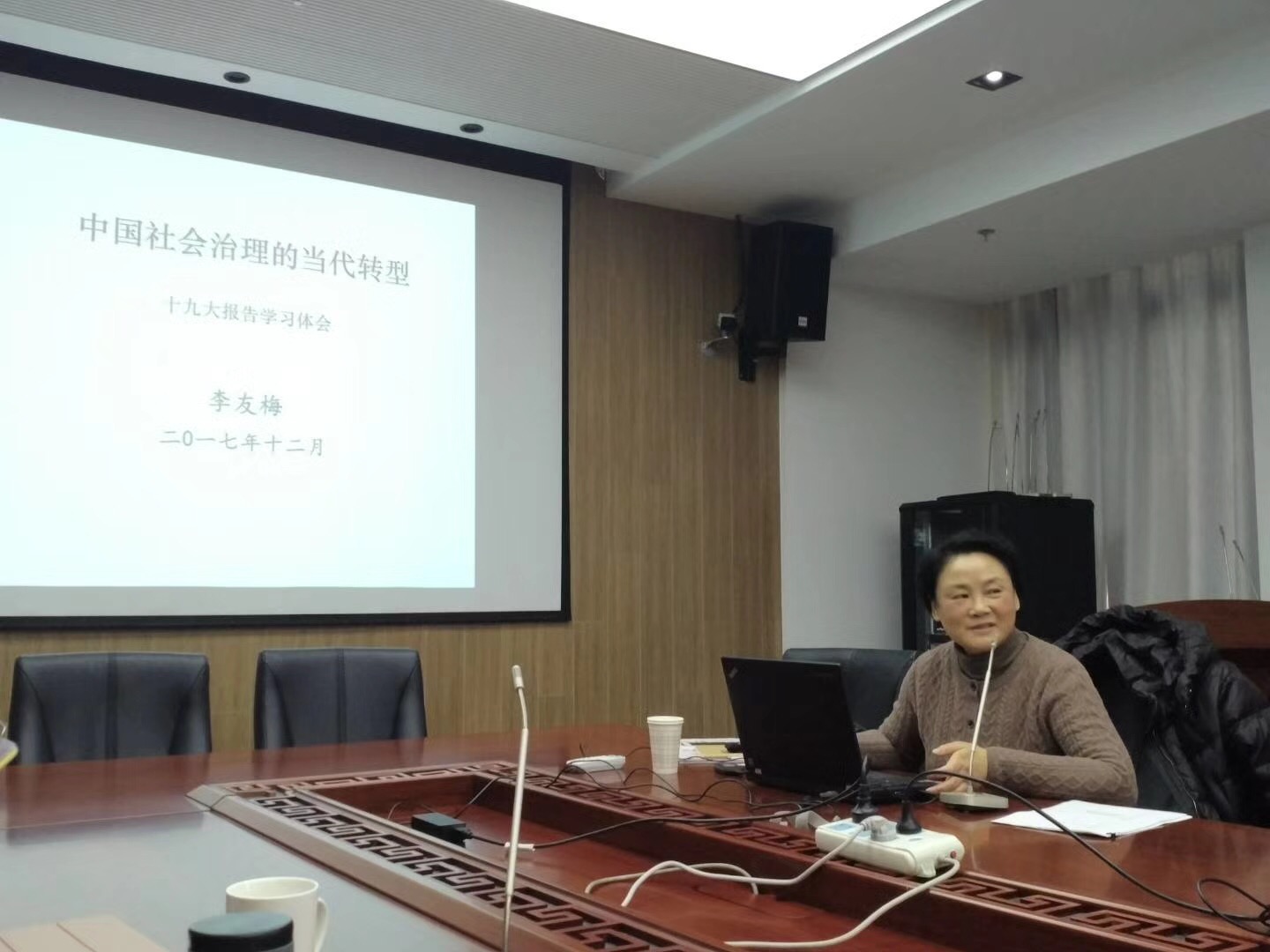 2018年1月10日,上海研究院第一副院长、365英国上市集团李友梅教授为365英国上市集团师生做了题为"中国社会治理的当代转型——十九大报告学习体会"的报告,365英国上市集团教生代表出席了本次活动 。