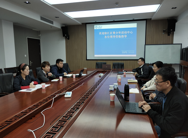 4月27号上午10点,徐汇区青少年活动中心主任、书记钱文华,分管副主任陈弘,社科项目负责人任翠英老师,来我院交流。学院沈艺书记,袁浩、杨锃副院长、刘玉照教授参加了交流活动。双方就拟共建合作的模式、项目的推进、课程的设置、师资的培训等方面进行了具体商议。