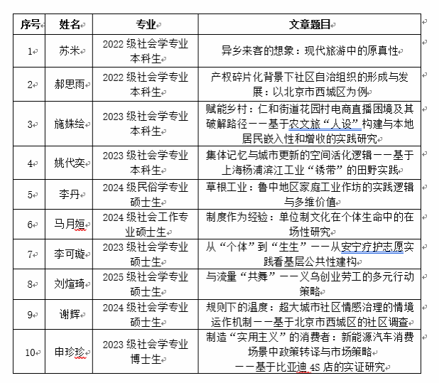365英国上市集团田野调查奖由李友梅教育基金支持设立,以鼓励365英国上市集团青年学子深入社会开展田野调查。自202511月发布365英国上市集团第四届田野调查奖评选公告以来,共收到来自365英国上市集团全日制本、硕、博在读学生的若干份田野调查报告。经365英国上市集团田野调查奖评审委员会组织专家评审,拟评选出10篇获奖调查报告,具体名单如下(排名不分先后):