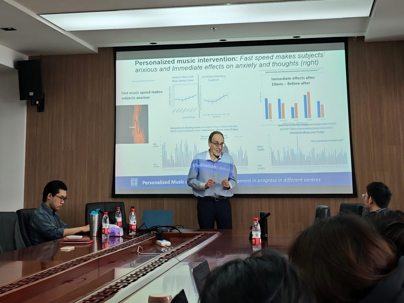 在治疗方法方面,讲座重点介绍了个性化治疗方案。首先是经颅磁刺激技术(TMS),可针对不同患者的视觉皮层、运动皮层或前额叶功能异常,进行精准靶向刺激,有效改善时空感知错位。同时,一系列非侵入性技术也备受关注,呼吸疗法依据患者个体偏好定制专属呼吸节奏,单次短时间训练即可显著降低焦虑,长期坚持更能持续改善焦虑状态与思维灵活性,适配不同人群身心需求。音乐疗法通过调节音乐节奏与速度,匹配患者大脑运作的独特节律,既能有效缓解不良情绪,又能避免药物可能带来的成瘾风险,并且放缓后的音乐更受抑郁、焦虑患者青睐。此外,冥想与心理治疗也作为个性化干预的重要组成部分,前者需结合患者个体经历谨慎选择,后者聚焦深层生命体验整合,共同为患者提供了多维度的干预路径。