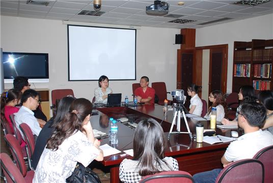 Yasmin Cho女士在美国杜克大学文化人类学系师从于Ralph A Litzinger教授。出于对西藏这块“神秘土地”的强烈向往,多年前她毅然放弃原来主修的政治学专业,重新选择攻读文化人类学专业博士学位,并且从异国他乡来到中国进行田野调查。Yasmin Cho女士向与会者介绍了她在亚青寺所做的田野调查情况,以及有趣的见闻。她试图用人类学的参与观察方法,从地理空间、宗教实践、性别认同这三个视角来考察亚青寺女尼这一特殊的群体。她还与在座的研究生、博士生同学交流了关于如何选题及田野调查之前如何进行准备工作的一些经验,给了同学们很多启发。(崔凡)