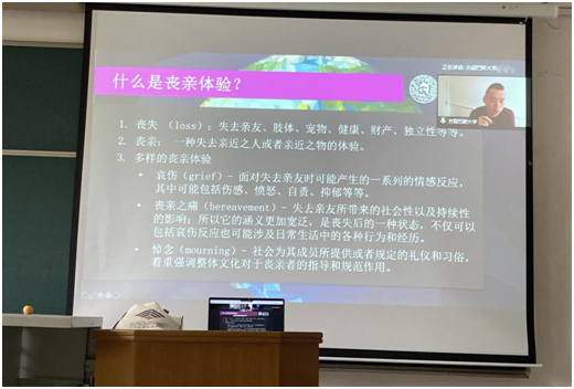 2021年5月17日下午,在阳方老师的邀请下,来自英国巴斯大学死亡和社会研究中心(Centre for Death and Society)的研究员方超博士与英国365公司2020级MSW全体同学进行了网络连线,亲自讲授“丧亲之痛和哀伤辅导”的相关知识。