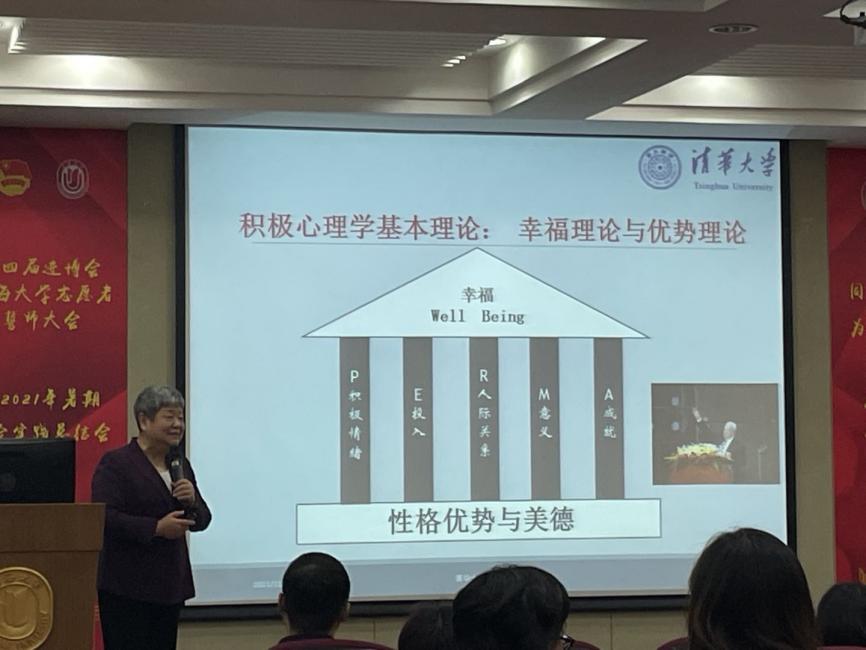 樊教授以科研领域的积极心理学为切入点,介绍了积极心理学在积极情绪、性格优势、积极组织建设等方面的众多研究成果,强调了积极心理学理论体系日臻完善。樊教授引用相关学者观点,并强调十九大报告与积极心理学的契合点。她指出,相较于传统心理学对哀伤、愤怒、焦虑等负向视角的关注,积极心理学更注重幸福、意义等积极要素,为心理学理论的发展开辟了新的视野和方法。