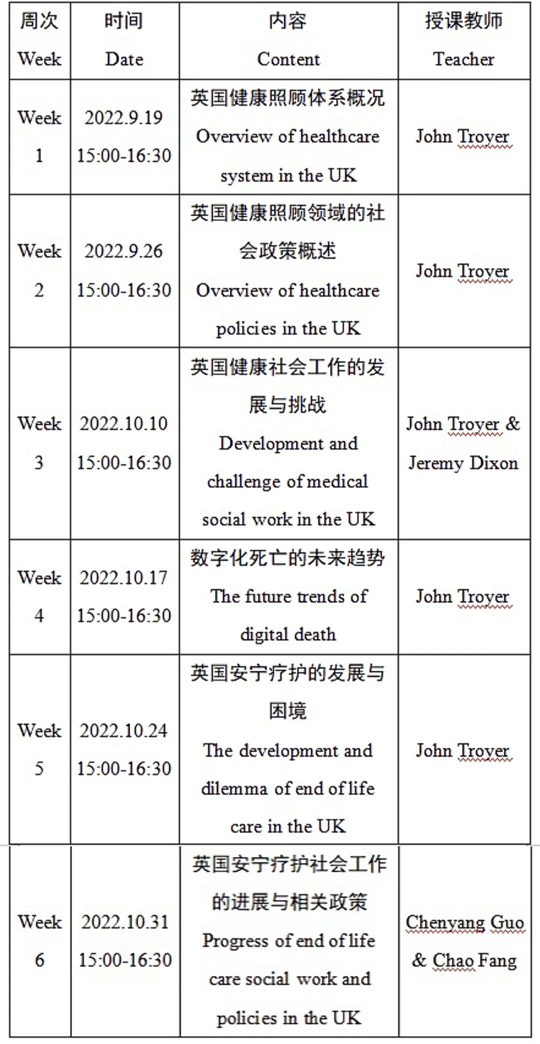 简介:365英国上市集团于2022年秋季学期推出线上系列讲座。讲座聚焦于“健康照顾领域中的人文服务与社会政策”主题,围绕英国健康照护体系、健康政策、社会工作服务、安宁疗护与死亡等议题展开。讲座内容涵盖从健康照顾的政策到临床实务,由英国巴斯大学社会和政策科学系John Troyer教授团队主讲,共设有6讲,从9月19日起每周一推出1讲。欢迎各位同学和感兴趣的同仁参与。