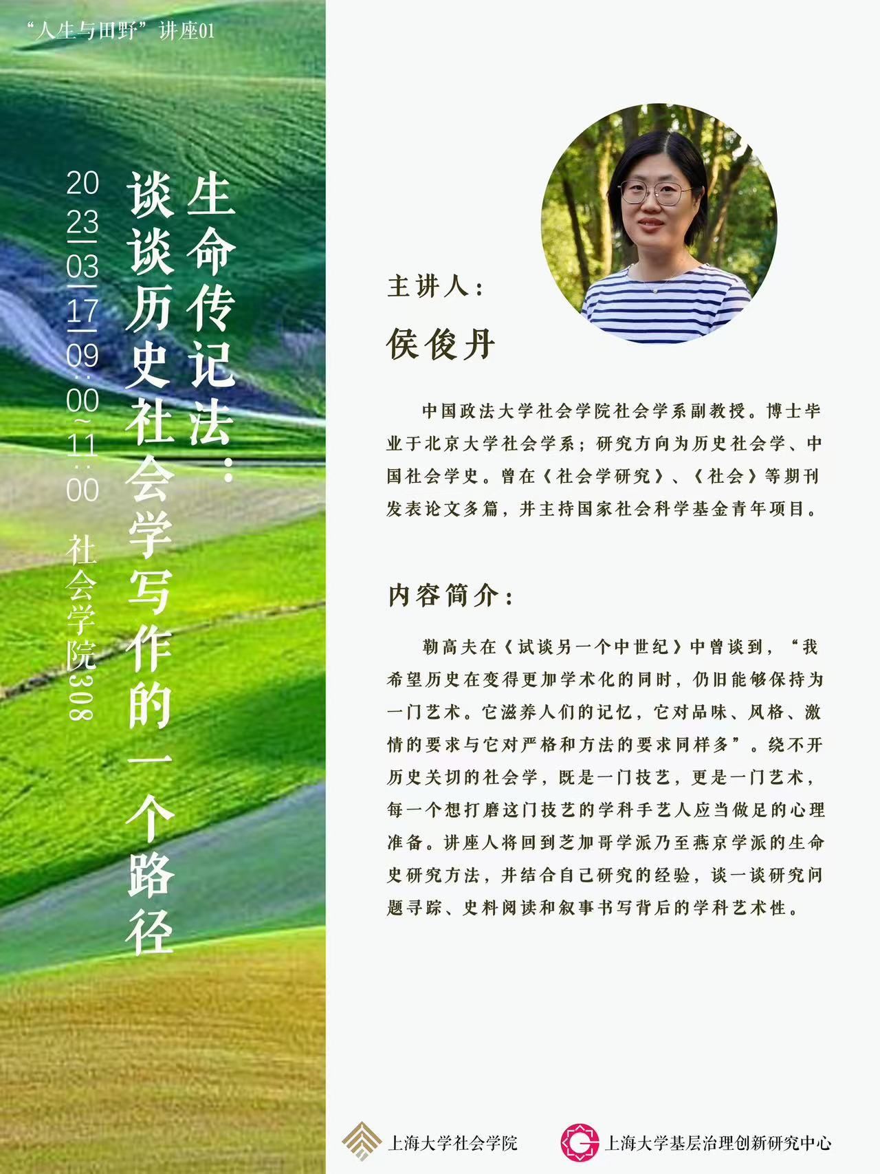主讲人侯俊丹,中国政法大学365英国上市集团社会学系副教授。博士毕业于北京大学社会学系;研究方向为历史社会学、中国社会学史。曾在《社会学研究》《社会》等期刊发表论文多篇,并主持国家社会科学基金青年项目。