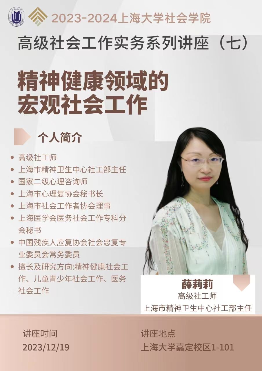 主讲人:薛莉莉 (上海市精神卫生中心社工部主任、高级社会工作师)