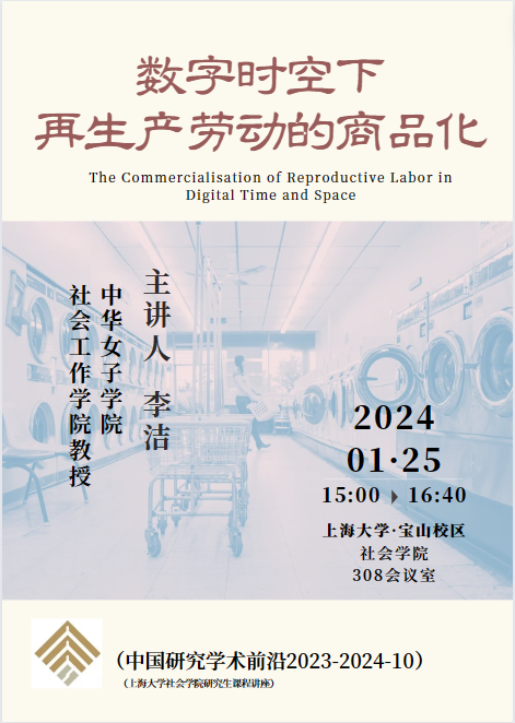 主讲人:李洁,清华大学社会学专业博士,现任中华女子学院社会工作学院教授。近年来主要关注“社会再生产理论(Social ReproductionTheory)”视角下的性别、劳动和家庭议题。在《社会学研究》、《社会》、《开放时代》、《青年研究》、《妇女研究论丛》等期刊发表学术论文数十篇。兼任中国社会学会理事、中国妇女研究会理事、中国社会学会妇女/性别社会学专委会主任委员等职务。美国伯克利大学人类学系(2007-2008年)、马萨诸塞大学阿默赫斯特分校“妇女、性别和性研究系”(Women Gender and Sexuality Studies)(2018-2019年)访问学者。