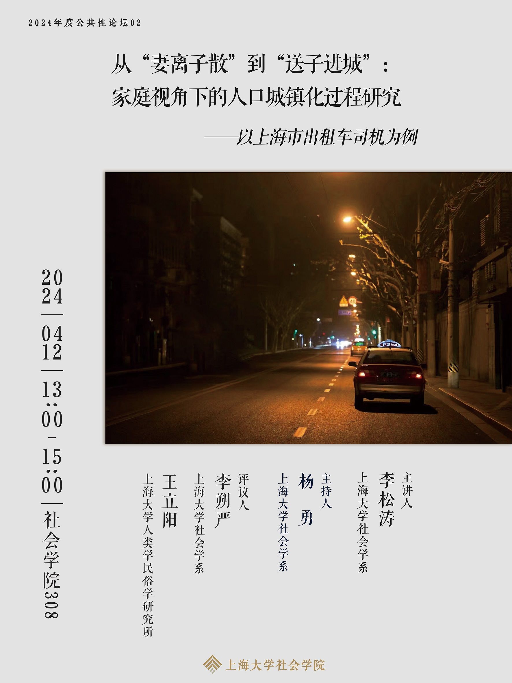 2024公共性论坛2:从“妻离子散”到“送子进城”:家庭视角下的人口城镇化过程研究——以上海市出租车司机为例