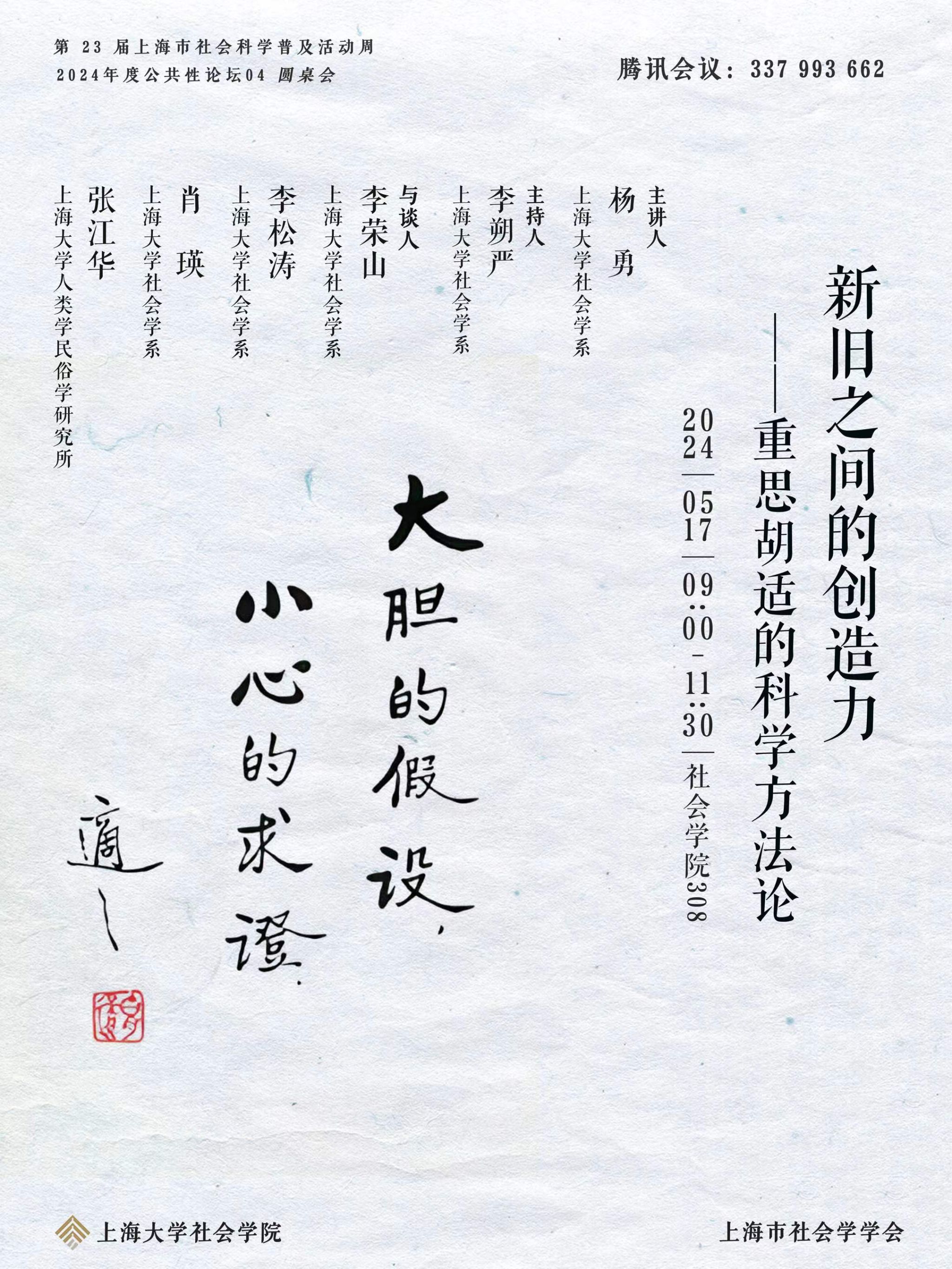 第23届上海市社会科学普及活动周讲座:新旧之间的创造力——重思胡适的科学方法论