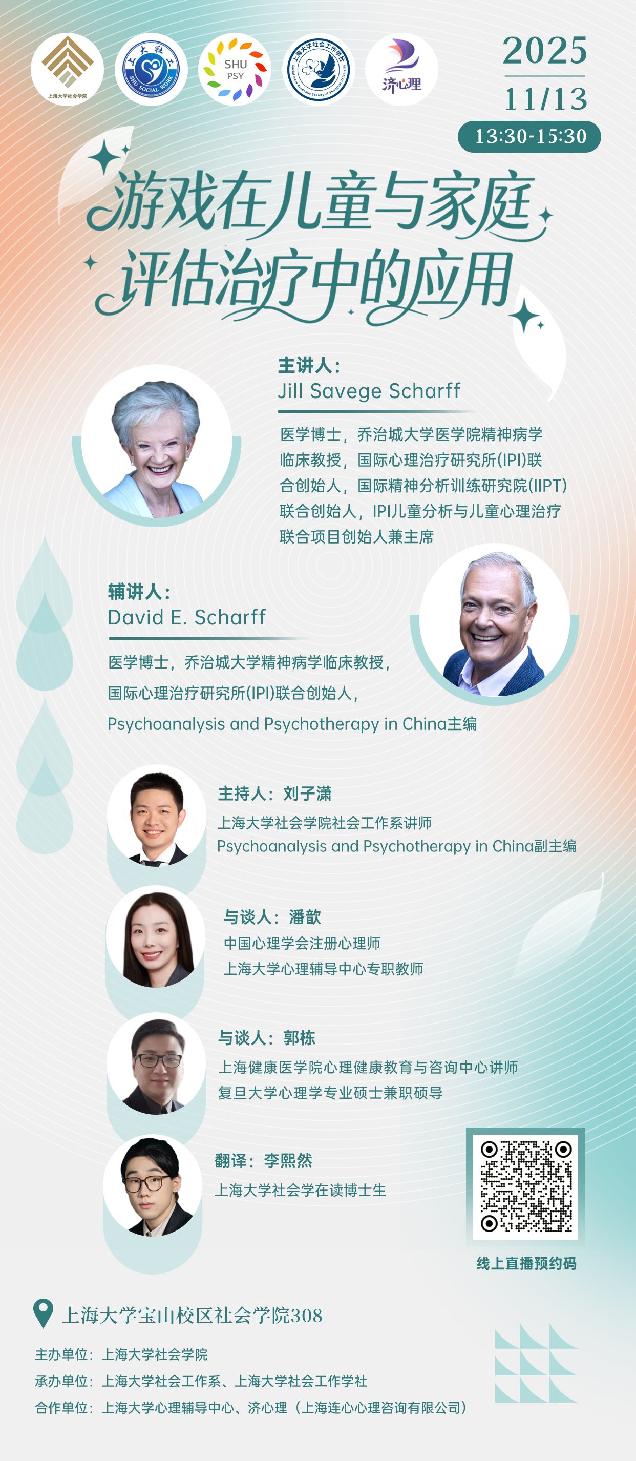 报告人 Jill Savege Scharff;David E. Scharff(美国乔治城大学教授) 报告时间(年月日) 2025年11月13日