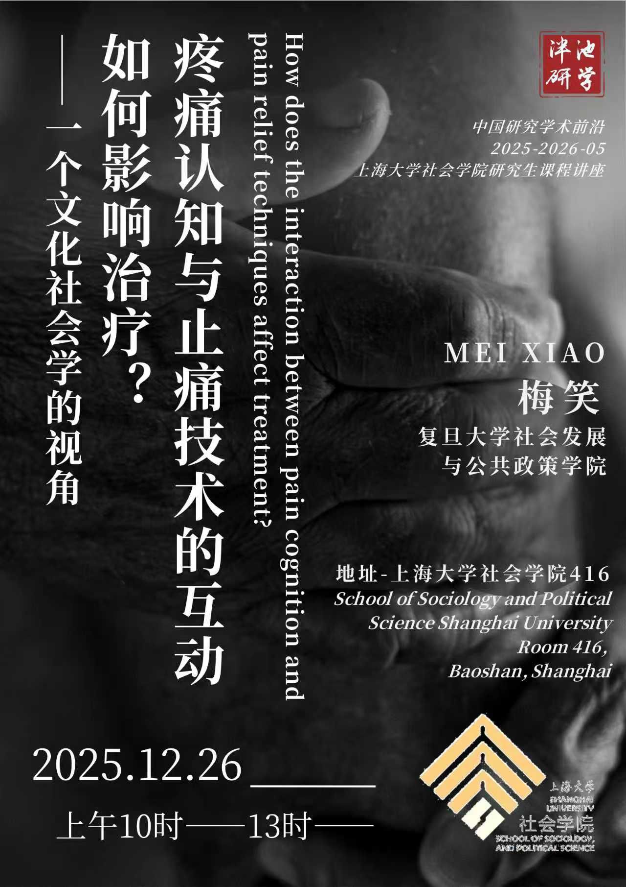 2025-2026中国研究学术前沿讲座|疼痛认知与止痛技术的互动如何影响治疗?——一个文化社会学的视角
