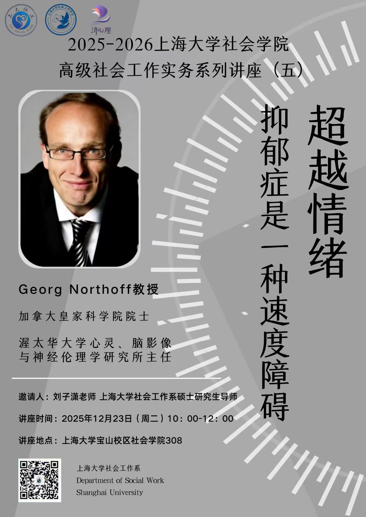 报告人 Georg Northoff (加拿大皇家科学院院士) 报告时间(年月日) 2025年12月23日