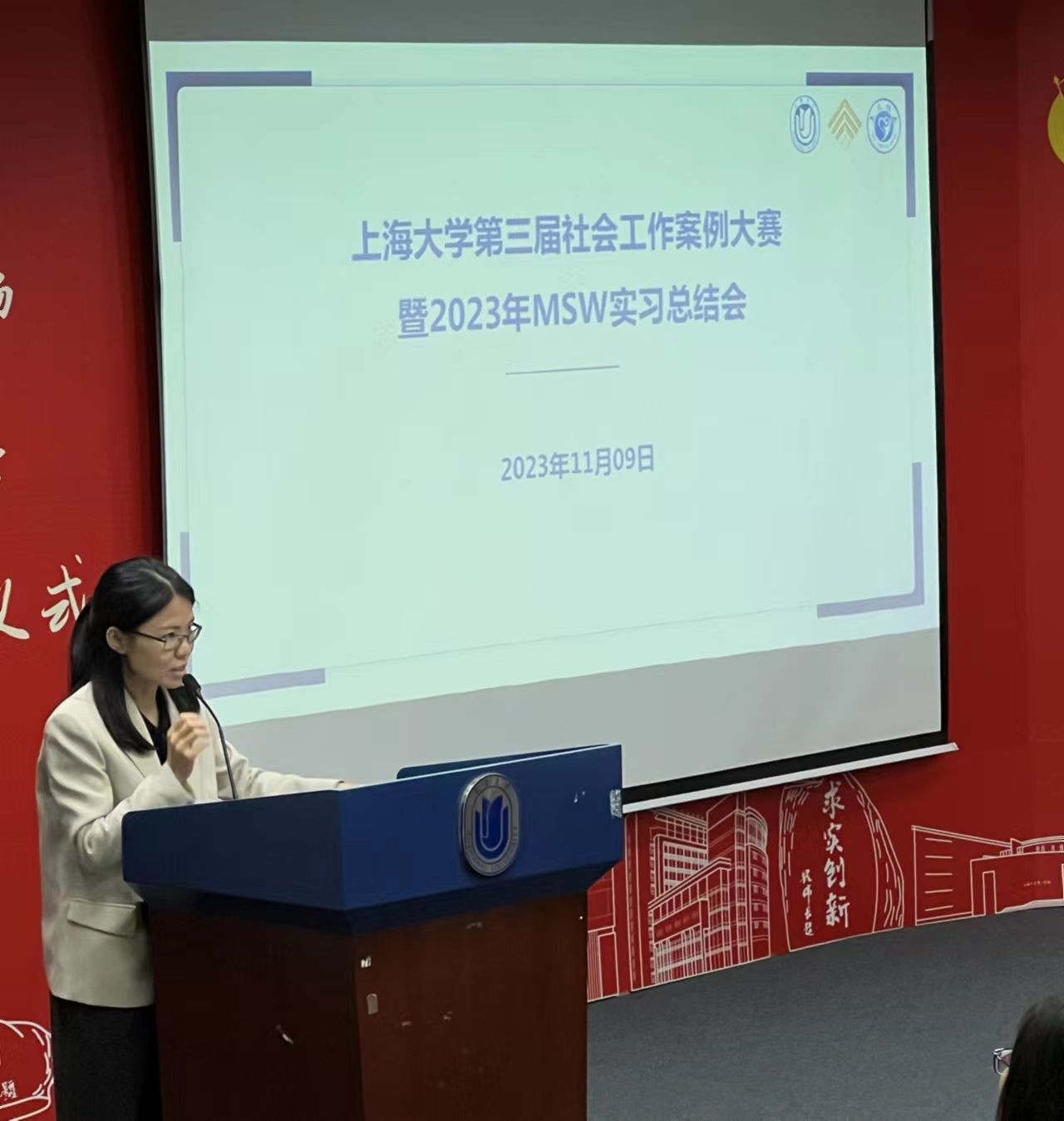 2022级MSW陈瑶瑶、杨佩芸和魏玉洁作了优秀案例分享。来自上海申爱社会工作发展中心的黎明露老师和上海嘉定区中心医院的石秋云老师结合不同实习领域,在实习历程、个人成长、角色定位、实习服务方法以及与督导老师关系等方面给予了诸多宝贵建议。