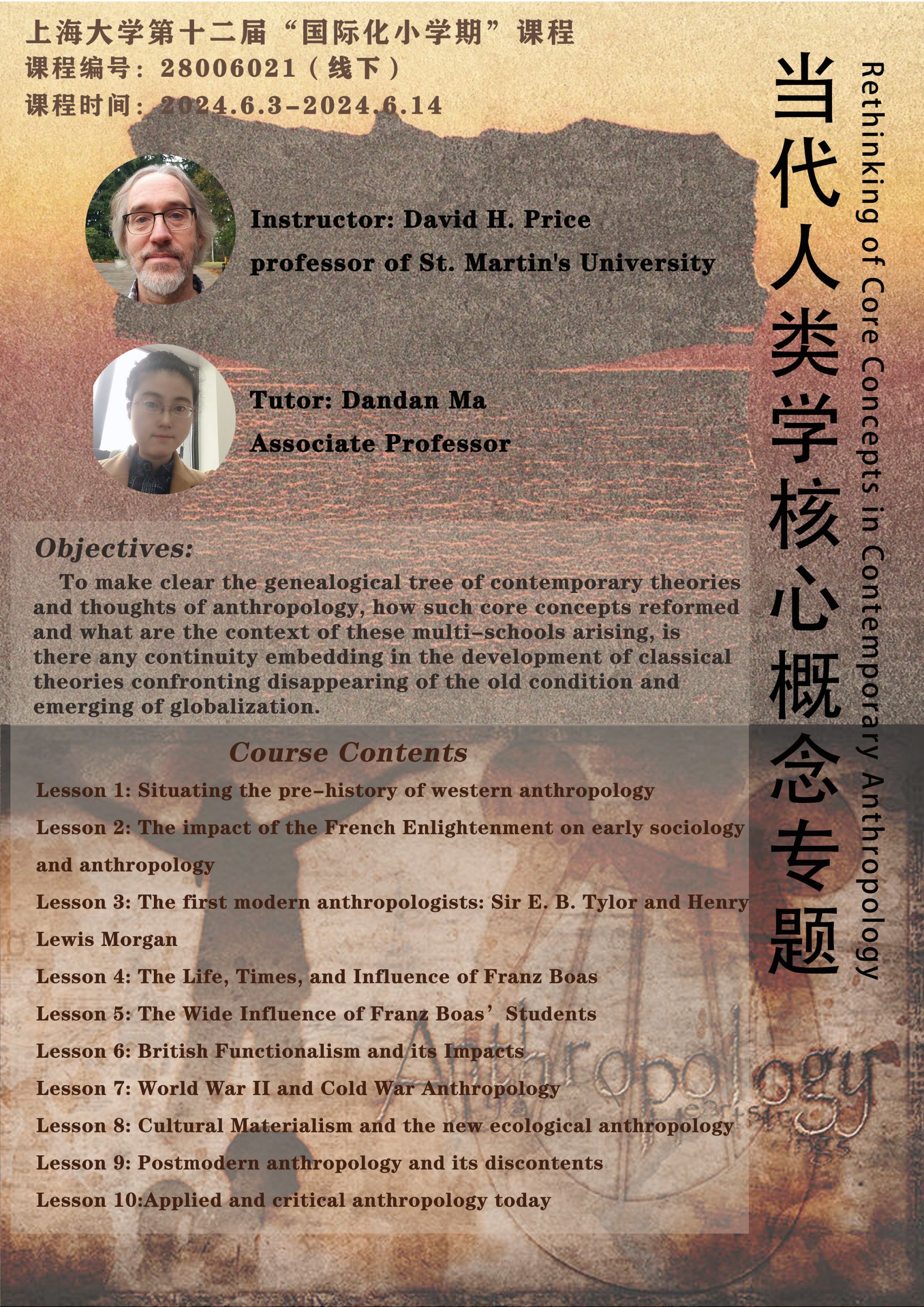 Objectives: 1. to make clear the genealogical tree of contemporary theories and thoughts of anthropology, how such core concepts reformed and what are the context of these multi-schools arising, is there any continuity embedding in the development of classical theories confronting disappearing of the old condition and emerging of globalization. 2. To compare major contemporary achievements of Chinese anthropologists with American peers. This will include comparing the quality of ethnography, creation of fieldwork methods and critical issues of social change etc. This work of comparison is to discover possibility of being independent of production based on the common generation and special characters of different experiences.