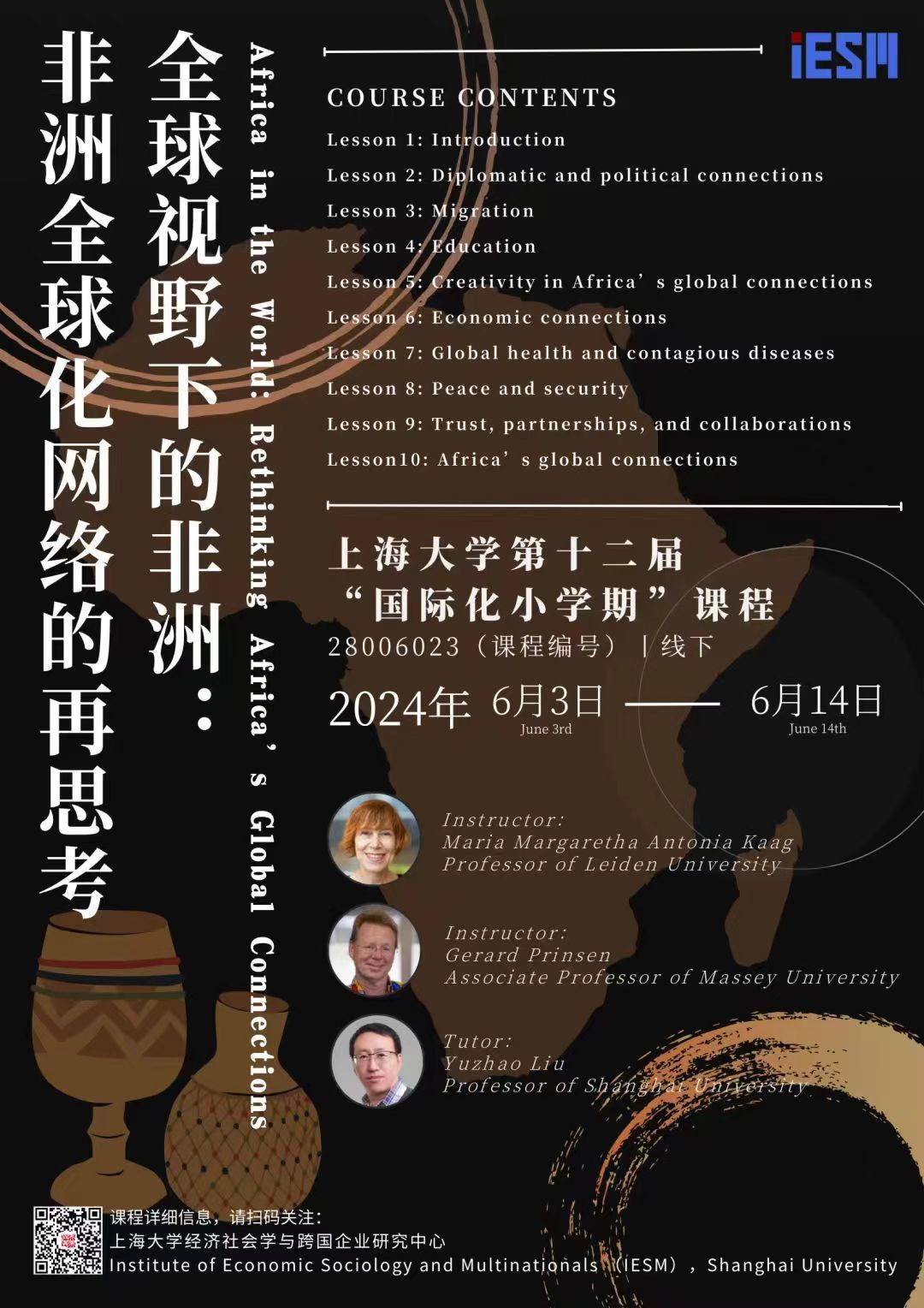 Objectives:Africa is a vibrant continent that has become increasingly important in global economic and political dynamics, not in the least because of its natural richness, its quickly growing and young population, and the increasingly vocal position taken by African leaders. In this course we will discuss Africa’s shifting position in the world by looking at Africa’s changing global the instructor. Please insert the original size clear photo here. 112 connections from a number of thematic angles, such as migration, security, economic connections, geopolitics, diplomacy. Specific attention will be paid to historical roots of current relationships, the diversity of Africa’s global partners, and how the intensity and character of global connections may vary between African regions and localities, and between categories of the African population. The aim is to provide the participants in the course with knowledge and insights that will enable them to critically assess current debates and developments concerning Africa in the world, including development challenges, the promises and pitfalls of partnerships, and the role of Africa(ns) in co-shaping the world order of the future.