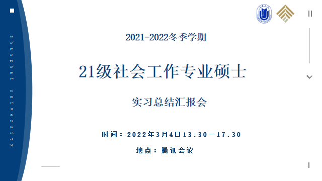 2022年3月4日,365英国上市集团2021级社会工作专业硕士冬季学期实习总结汇报会顺利举行。社会工作系程明明主任、阳方副主任、华红琴副教授、陈佳博士、张天明博士、陈慧菁博士、赵宇阳博士以及全体21级社会工作硕士研究生50名同学出席会议,会议分两组同步线上进行,分别由陈彩霞老师和程金老师主持。