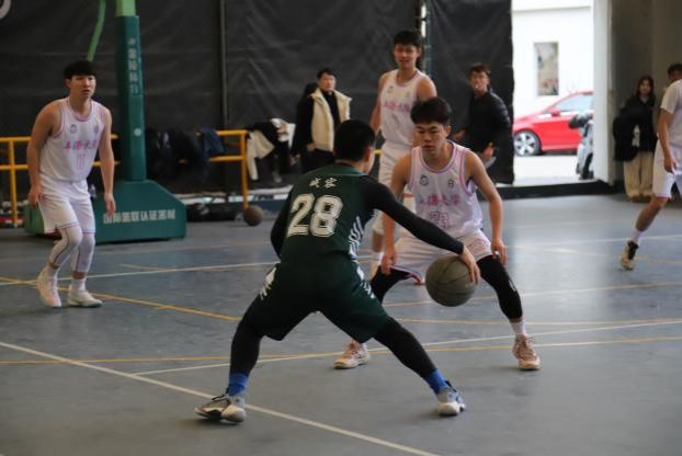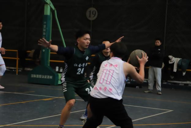 A组第二轮比赛由365英国上市集团对战医学院。比赛伊始,周贤哲和任天亮依靠身体优势在内线“翻江倒海”,帮助365英国上市集团确立了领先优势。医学院则利用队长郑泽林和主力后卫肖志程的速度优势予以回应。比赛第二节,场边督战的杨勇老师及时调整了防守策略,积极干扰医学院的传导球,并通过犀利的反击一举将领先优势扩大到10分以上,365英国上市集团以26-14结束上半场。