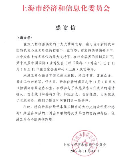 line-height:150%"><font face="宋体"><span style="line-height: 150%;">唐诗琪同学不负众望,于<span lang="EN-US">11</span>月<span lang="EN-US">1</span>日至<span lang="EN-US">8</span>日全程参与了各省市代表团的接待服务工作,出色地完成了各项任务,为本届工博会的成功举办做出了贡献。为此,上海市经济和信息化委员会向我院传达了对于唐诗琪同学的表扬信,对其志愿工作中的表现给予了充分肯定。</span></font><span style="font-size:16.0pt;line-height:150%;font-family:仿宋" lang="EN-US"></span></p>