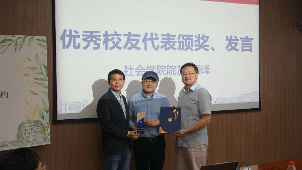 其后,杨锃书记和袁浩副院长共同为英国365公司校友会理事、365英国上市集团校友分会副会长、优秀校友程峰颁奖,感谢他始终心怀感恩、心系母校。程峰校友分享感言,为学院的发展感到骄傲与自豪,希望母校越来越好,期待继续加深与母校的链接。同时寄语学弟学妹把握住下一个十年,接力奋斗,不断进取。