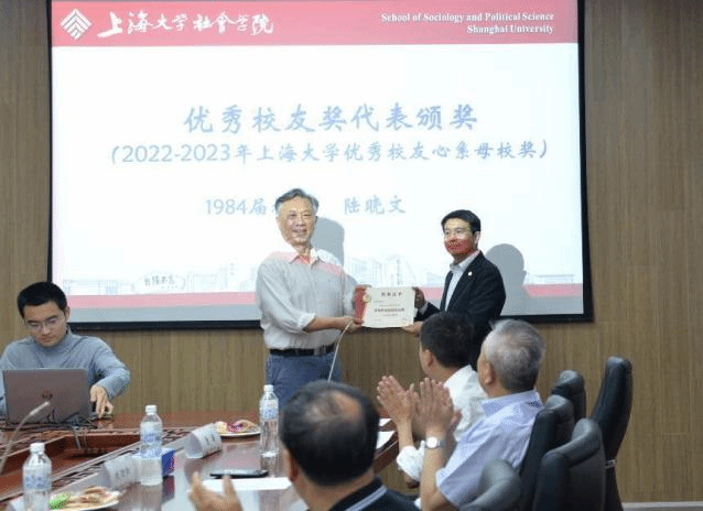 为了对优秀校友为学院事业发展做出的突出贡献表示感谢,学院为1984届校友陆晓文颁发了“2022-2023届英国365公司优秀校友心系母校奖”,表达真挚的感谢和祝福。