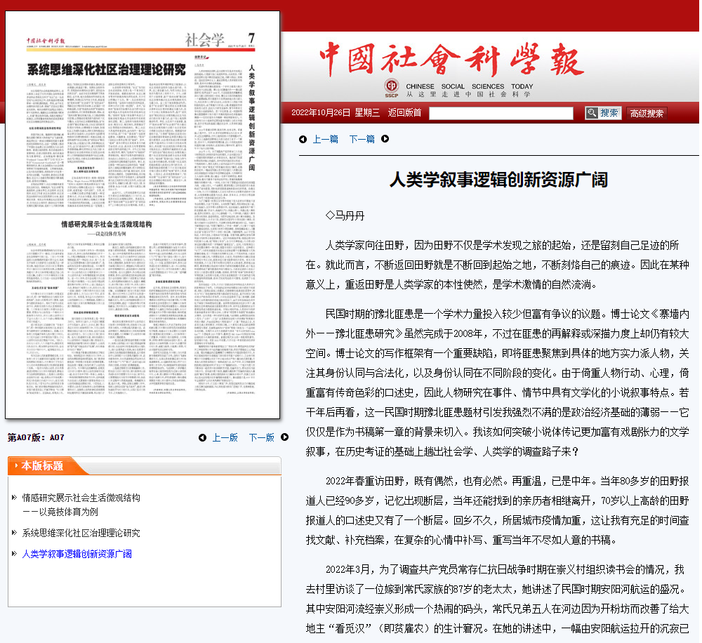 本文作者马丹丹,发表于2022年10月26日的《中国社会科学报》07版社会学,中国社会科学网