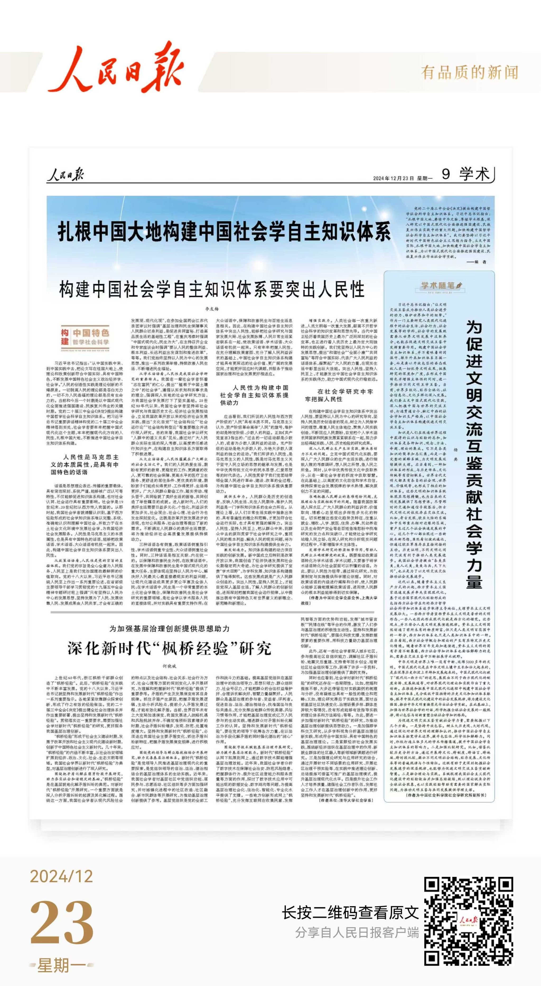 《人民日报》 | 李友梅:构建中国社会学自主知识体系要突出人民性(构建中国特色哲学社会科学)