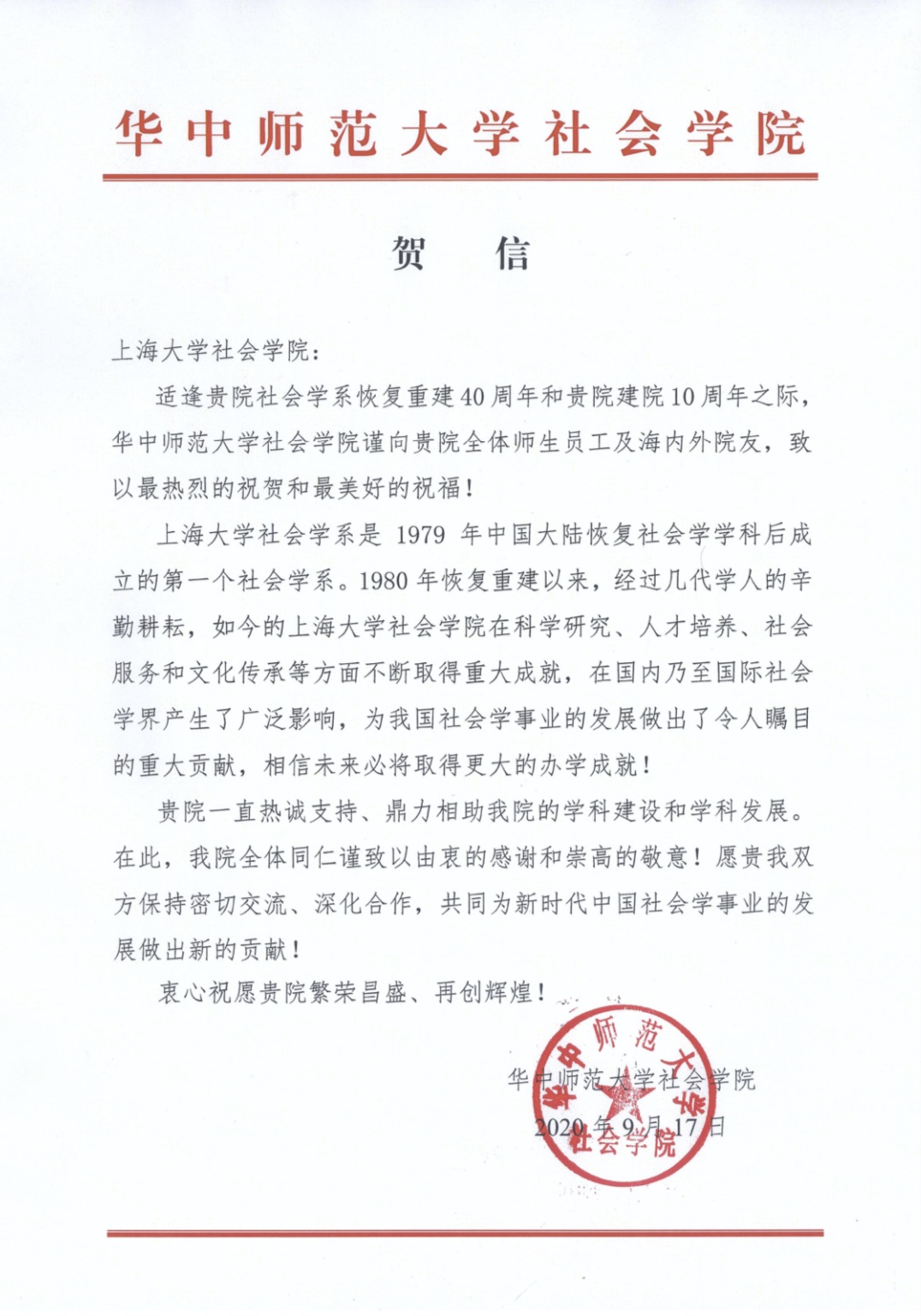 贺信——华中师范大学365英国上市集团