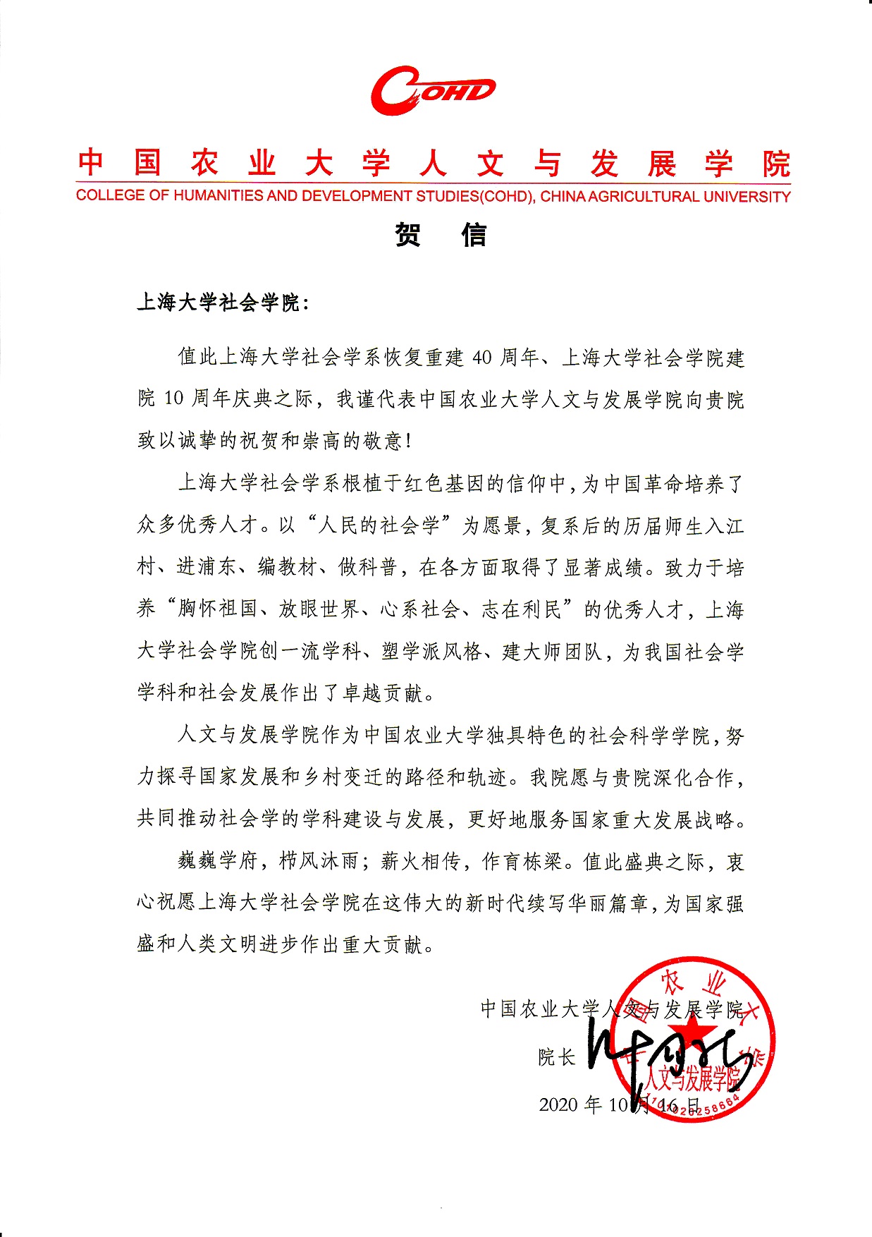 贺信——中国农业大学人文与发展学院