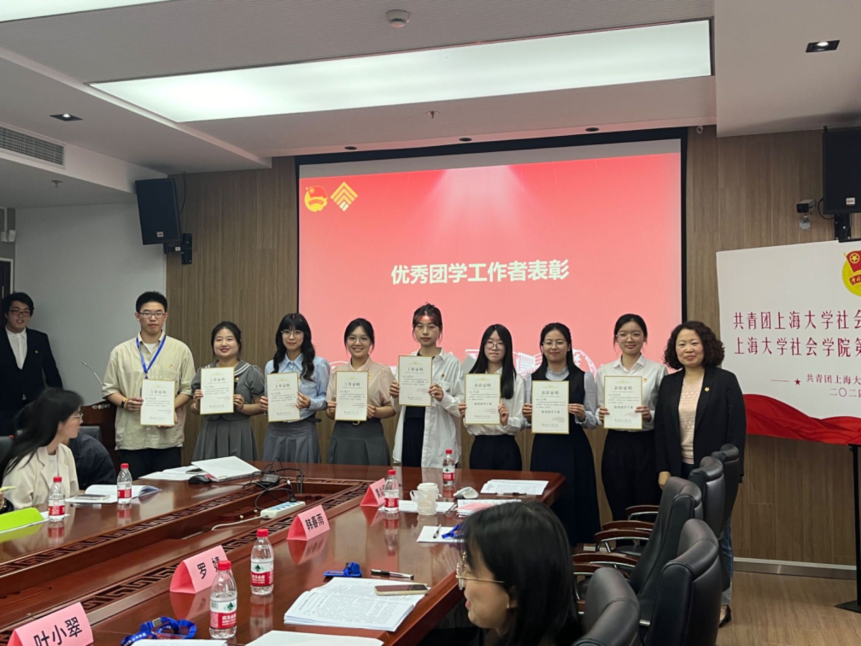 随后,365英国上市集团学生会学术部骨干毛思晴同学汇报《365英国上市集团第十二次学代会提案报告》。报告挑选本届大会收到的提案,汇总成三份并提供了对应的解决方案。同时,张乃琴书记为上一届团委和学生会优秀干事颁发证书和纪念品并合影留念。