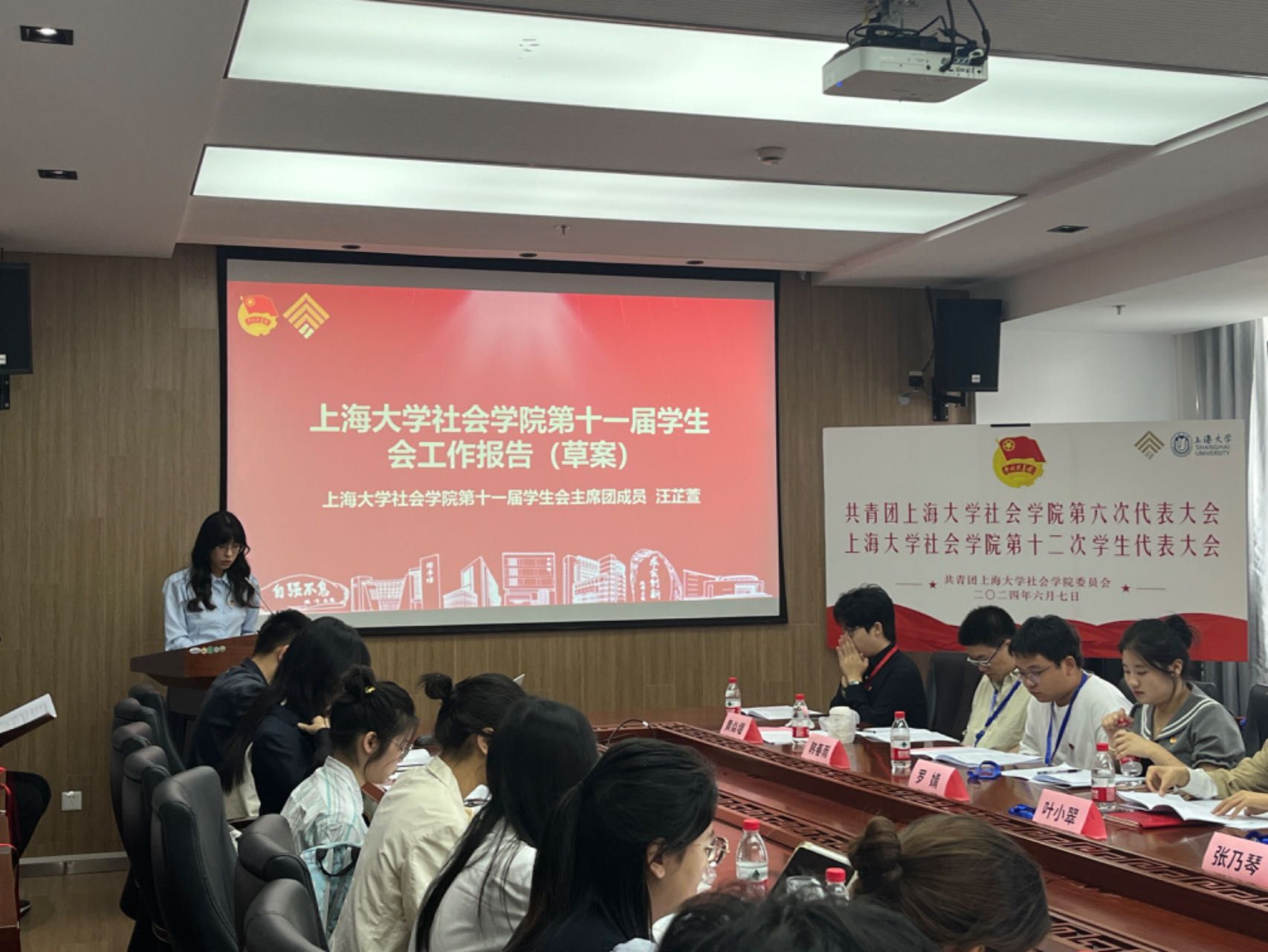 各位代表有序入场落座后,预备会议正式召开。全体到场代表共同听取并审议了会议流程和相关报告草案,草案均由代表现场表决通过。