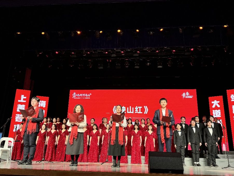 在精彩的独唱和悠扬的钢琴前奏之后,合唱团的团员们在指挥的引领下,激情演唱《映山红》。钢琴伴奏灵动轻盈,二胡旋律悠扬,合唱团成员们声音和谐、表情投入,将歌曲中的深情与祝福完美地传递给了每一位观众。一曲终了,台下响起的热烈掌声,是对合唱团精彩表演的最佳证明。