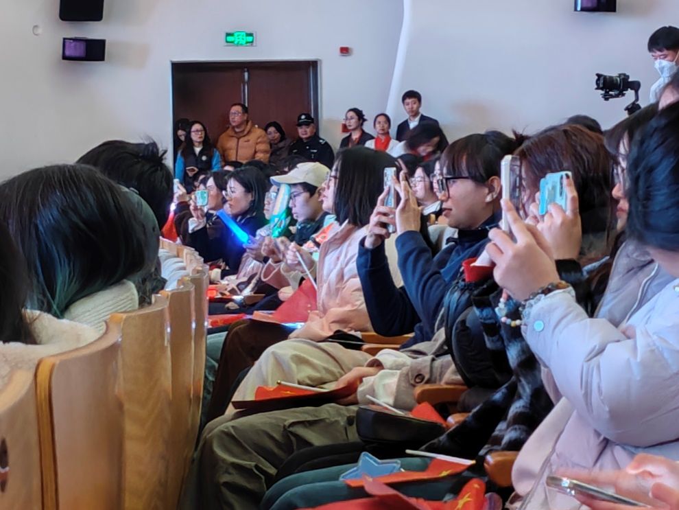 此次合唱比赛不仅吸引了大量师生前来观看,还组建了一支特别的观众团队。他们在台下整齐划一地挥舞着手中的荧光棒,为合唱团成员们加油助威。