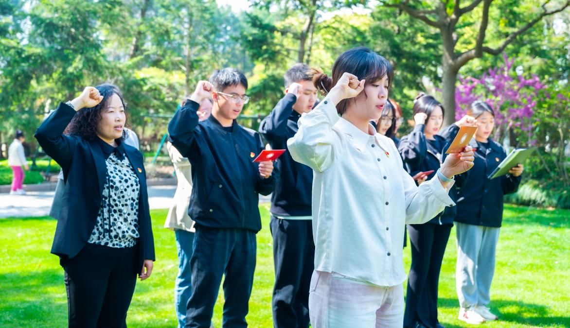 “我志愿以秋白精神为引领,投身时代洪流,忠于祖国,忠于人民,矢志共产主义理想;求真务实,锐意进取,书写时代崭新篇章;燃烧青春,竭诚奉献,以实际行动诠释党员担当。我决心以秋白同志为榜样,争做江南第一燕,践行党的宗旨,为实现中华民族伟大复兴,奋力拼搏!”在支部委员翁卓莹的带领下,全体党员庄严宣誓。