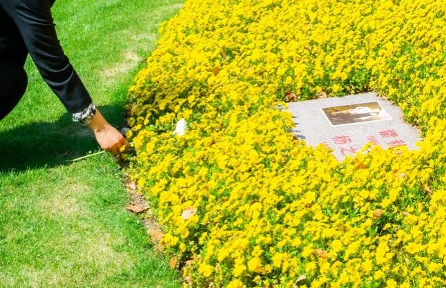 阳光洒在青灰色墓碑上金色碑文熠熠生辉。全体人员肃立默哀,素白花圈上“秋霜铸铁骨,白羽寄丹心”的挽联随风轻扬。党员们用洁白的方巾擦拭墓碑,依次献上寄托哀思的白菊,有人驻足凝视碑文,仿佛在与历史对话
