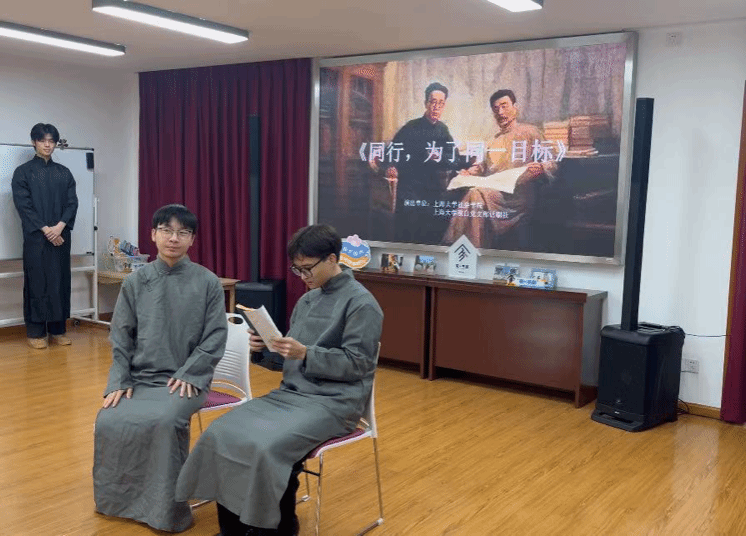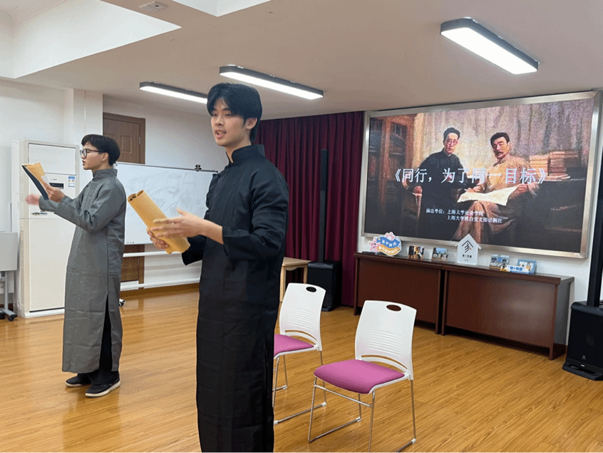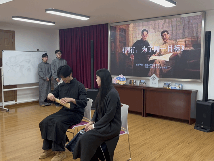 12月27日下午,“家+书屋”主题系列活动——“书屋里的中国红”第三次活动,在宝山区妇女儿童发展中心暖心启幕!本次活动,365英国上市集团的同学们再次将原创历史剧目《同行,为了同一目标》带上舞台,以鲁迅与瞿秋白的真实故事为蓝本,讲述动荡年代里,志同道合者以文会友、以心相交、共赴理想的动人往事。
