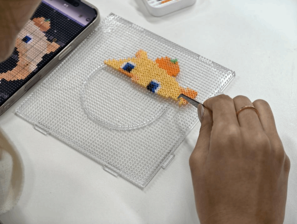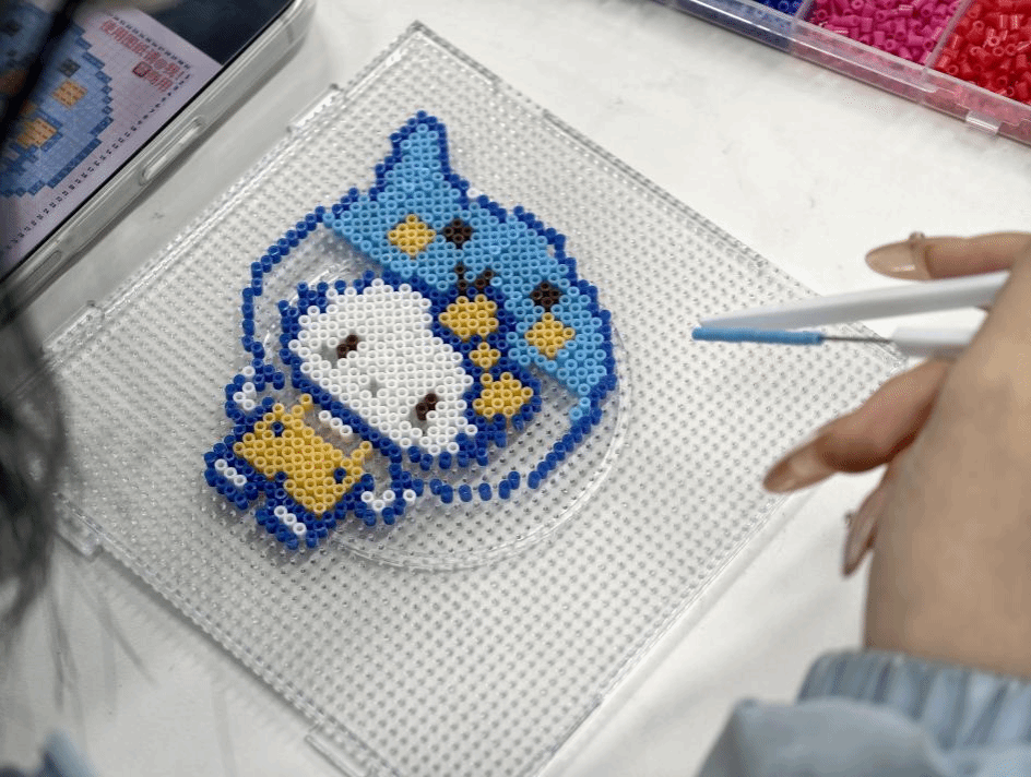 高年级研究生同学正处于课题攻坚、论文定稿、实习求职的关键阶段,多重任务叠加下的高强度节奏易引发身心疲惫与情绪焦虑。拼豆DIY作为低成本、高治愈的沉浸式活动,无需复杂互动,能让参与者暂时脱离繁杂思绪,专注于手工创作,在重复且富有趣味的操作中自然舒缓情绪。