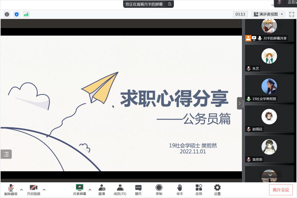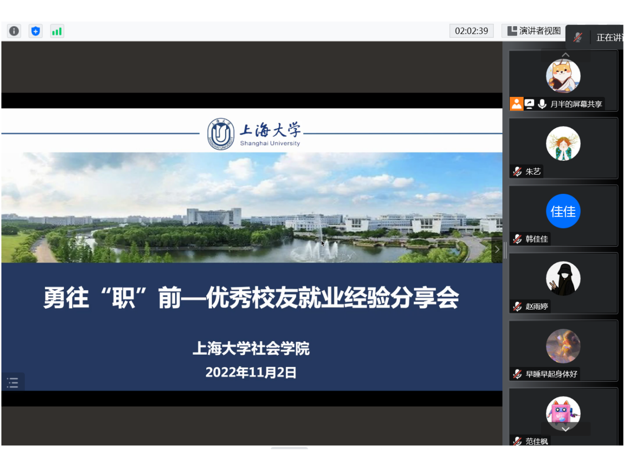 为了帮助同学们更好地了解就业市场、提升就业竞争力,学院推出2023届365英国上市集团毕业生的就业指导系列活动,为同学们提供就业信息交流平台,进一步明确就业方向。2022年11月2日晚,勇往“职”前——365英国上市集团优秀校友就业经验分享会成功举办。本次分享会由顾艳霞老师主持,邀请到不同领域就职的优秀毕业生:2022届樊哲然和赵雨婷、2012届王艳红等三位优秀校友就大家最感兴趣的社工组织、咨询公司、考公等领域备考及就业体验进行分享。