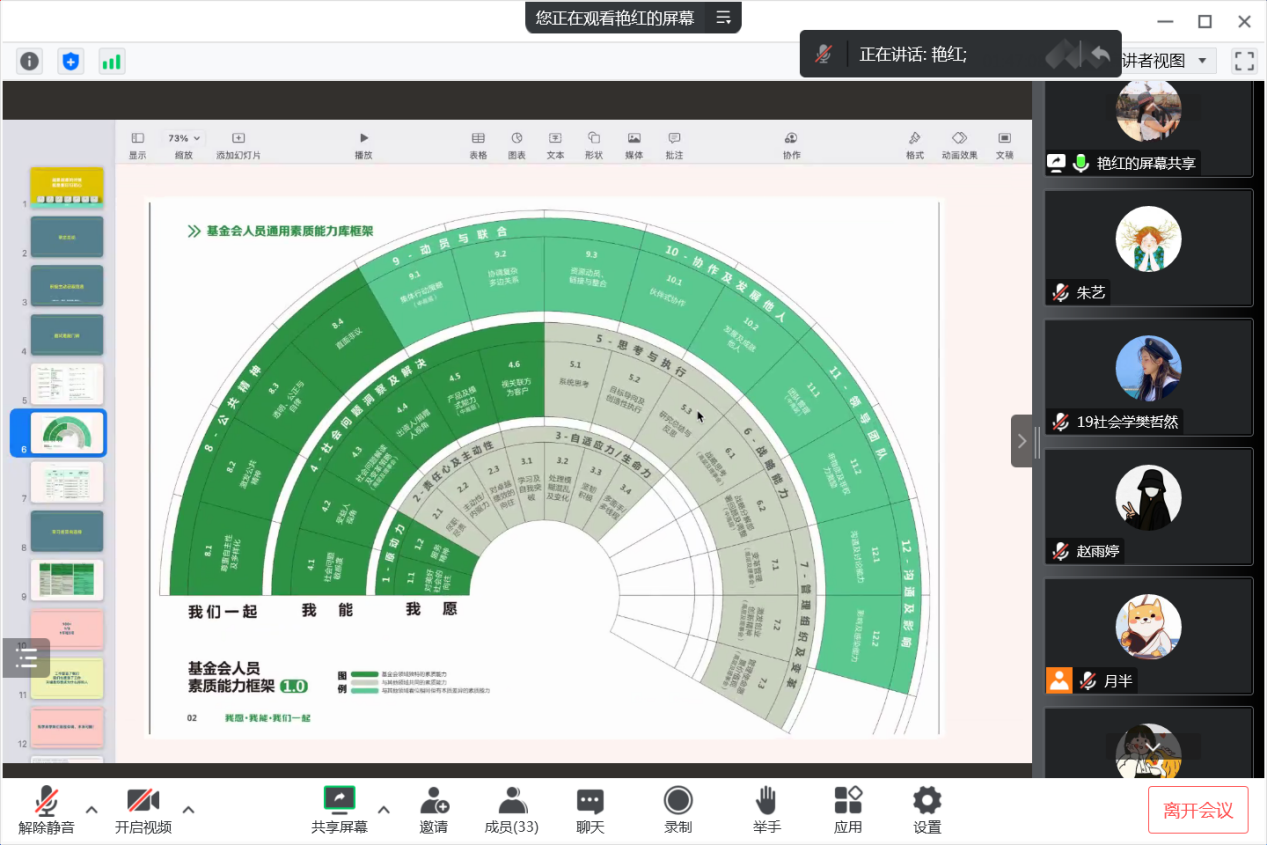 王艳红校友在社工组织已深耕数年,她以自己的切身体验,就毕业季如何调整自己的心态、把握自身节奏、确定目标等问题做了深入的分享,她指出要回归初心、早定目标,积极主动去获取信息,去梳理自己的职业规划;同时从一个面试官的角度向同学们详细分析求职者需要具备的素养,并对同学们关心的重点问题进行有针对性的解答。