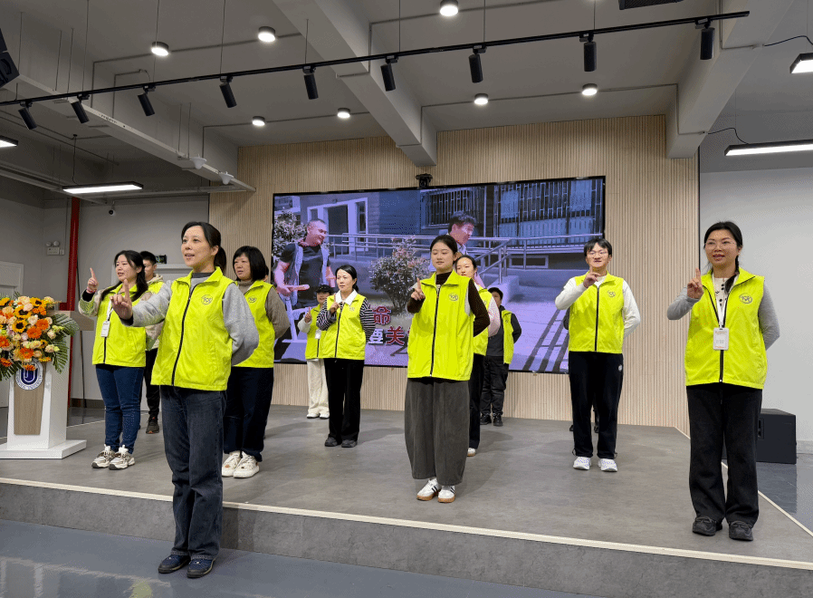 基金会志愿者老师齐唱会歌,并共同演绎手语表演。伴随着基金会公益视频的播放,现场沉浸在感动与激励的氛围中,展现了春华秋实“以爱育人”的核心理念。