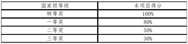 (备注:若竞赛项目一等奖为最高奖项,则一、二、三等奖得分分别为100%、50%、30%)