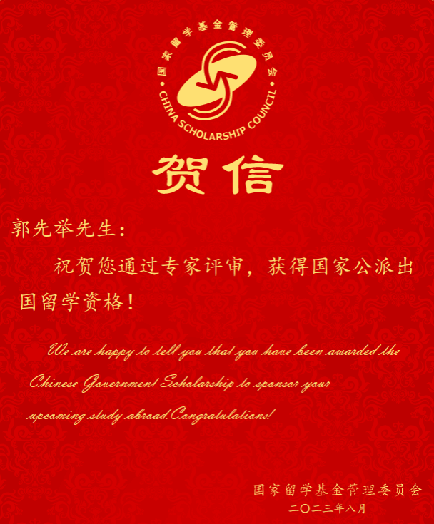 截至目前,英国365公司共有5名研究生被该项目录取,郭先举同学也是学院第2位获得该项目的同学。